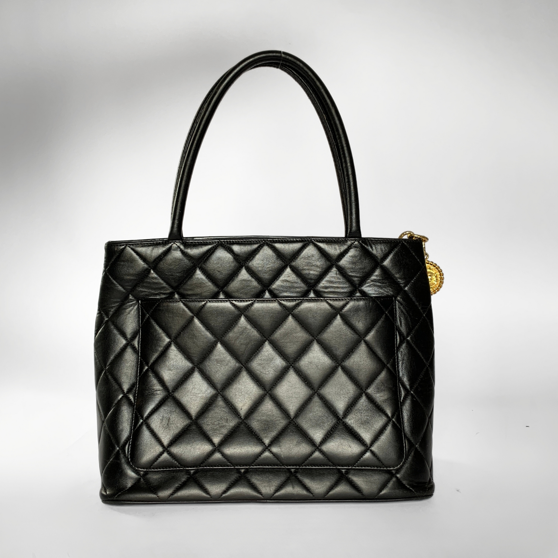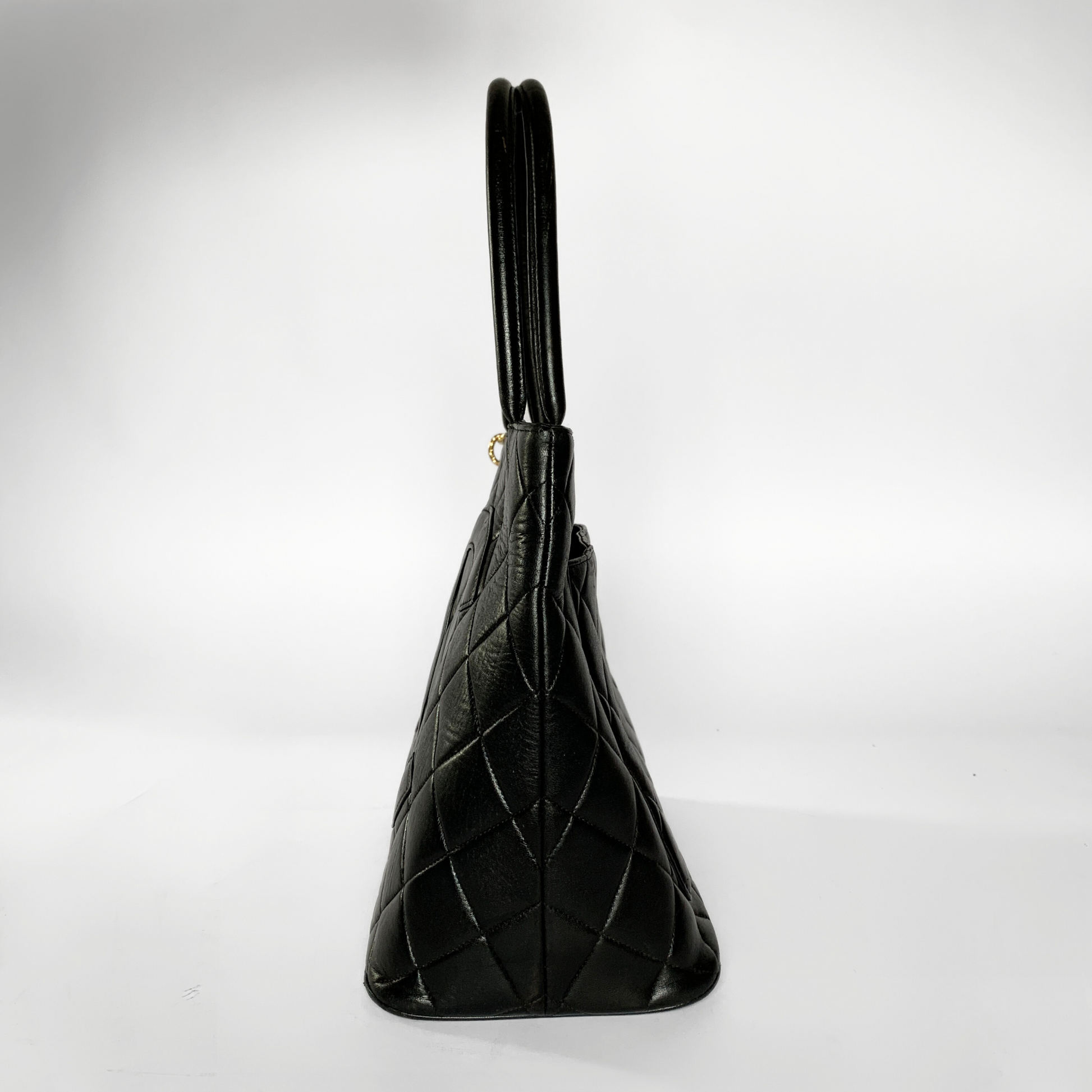 Chanel CC Medaillon Handbag in Black Lambskin Leather. A simple, yet timeless handbag. A comfortable bag for the modern woman who needs to carry around her essentials.