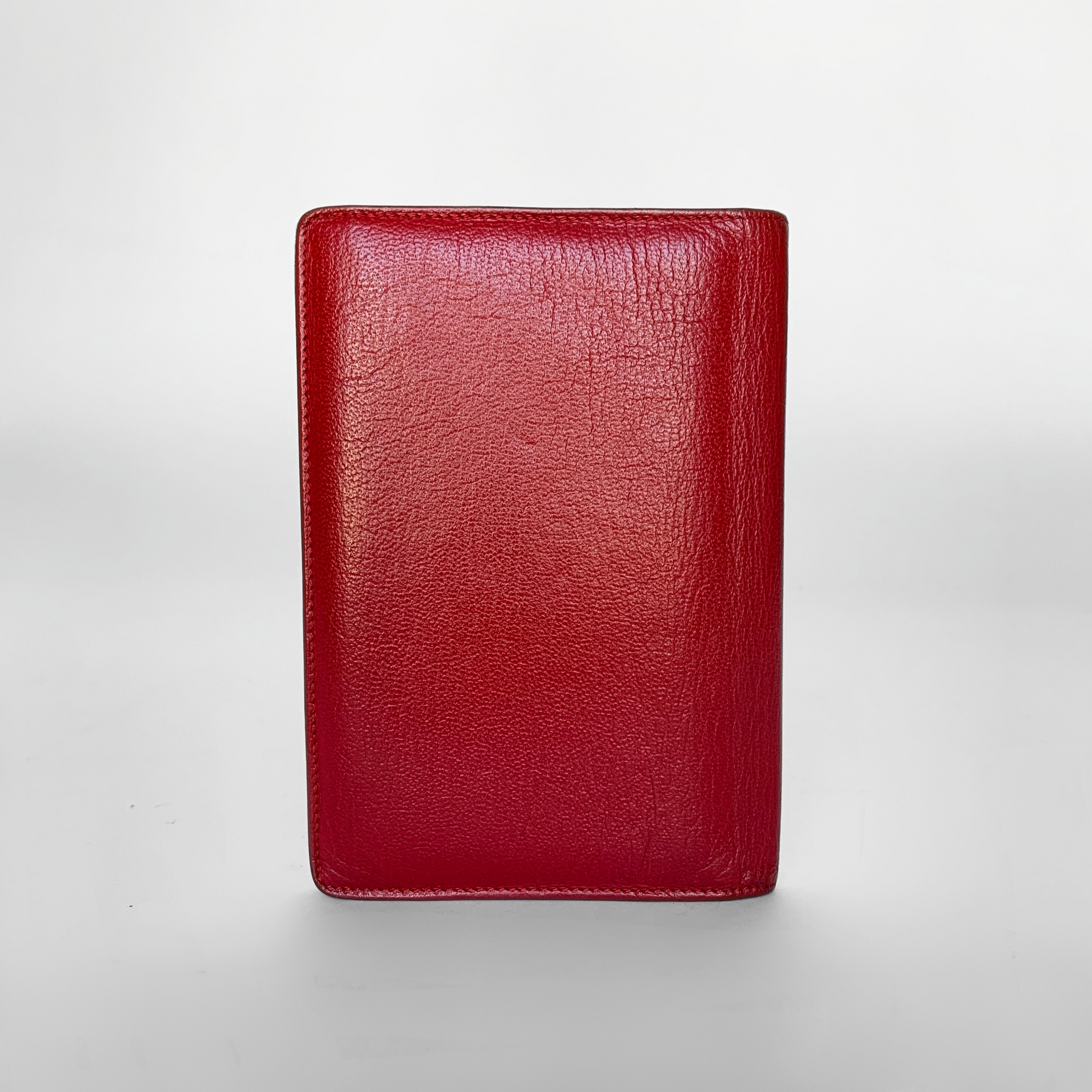 The overall condition of the wallet is good. However, there is a bit of discoloration on the leather and the inside. The big slip-in compartment where you can put money in, you can see user signs. This item comes with the original box and an authenticity card from our store.