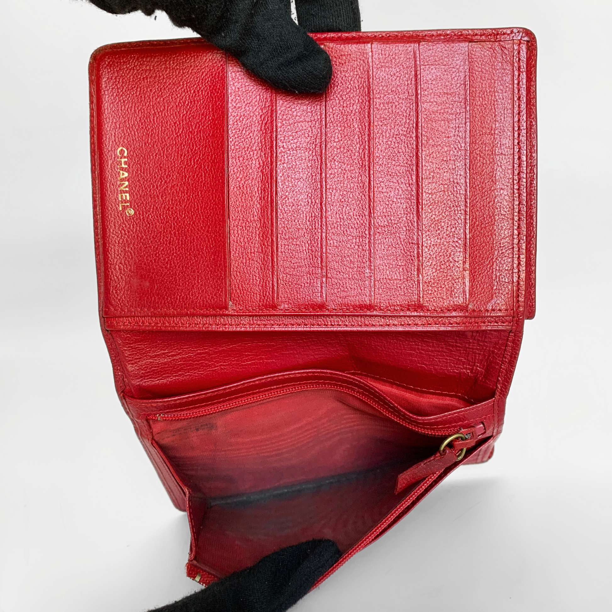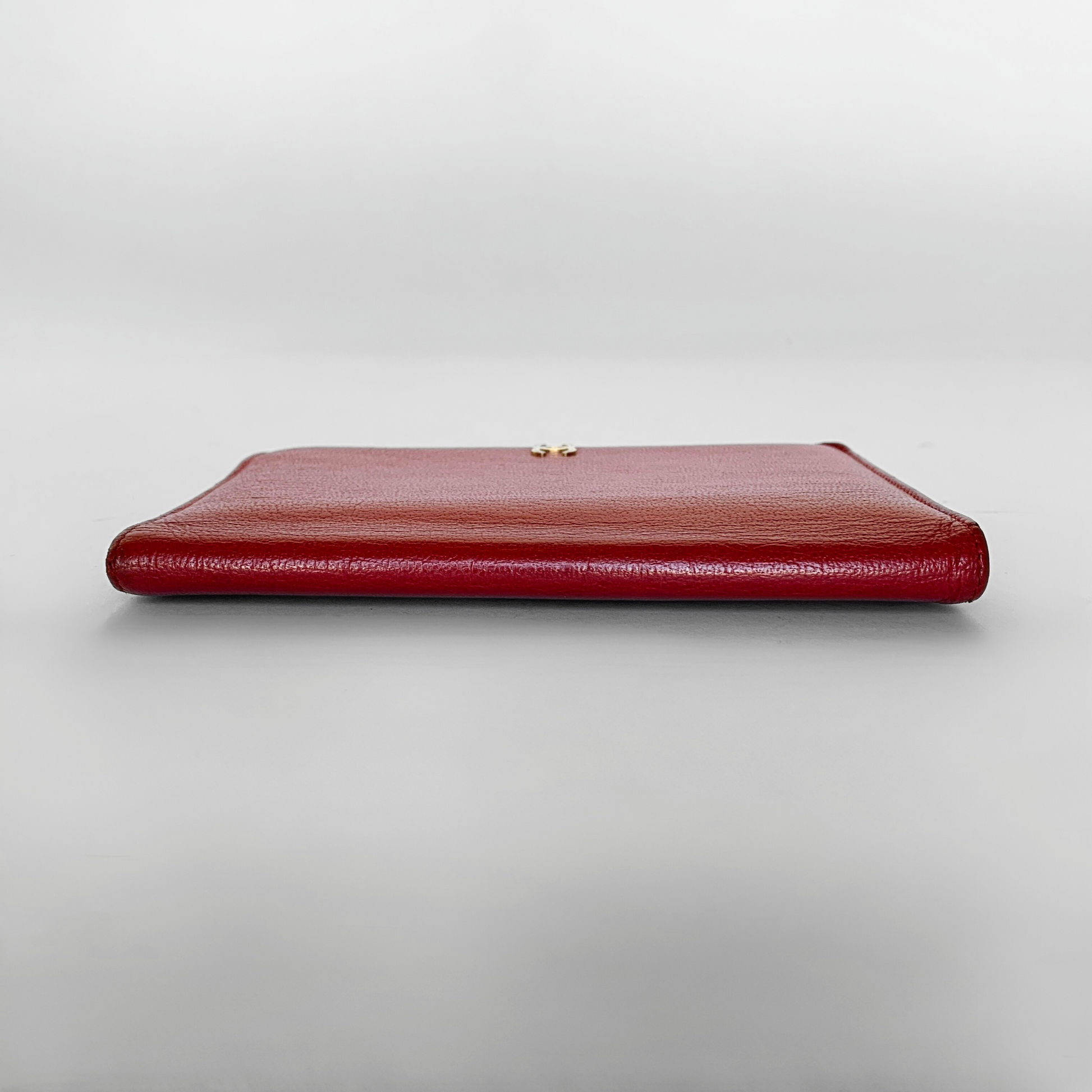 Chanel CC Wallet Large in Red Lambskin Leather with gold-colored hardware. The wallet is in large size and has a lot of storage to fit your everyday essentials.