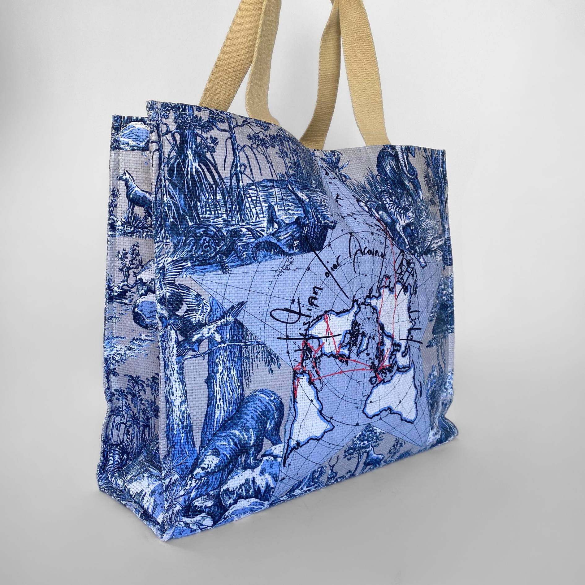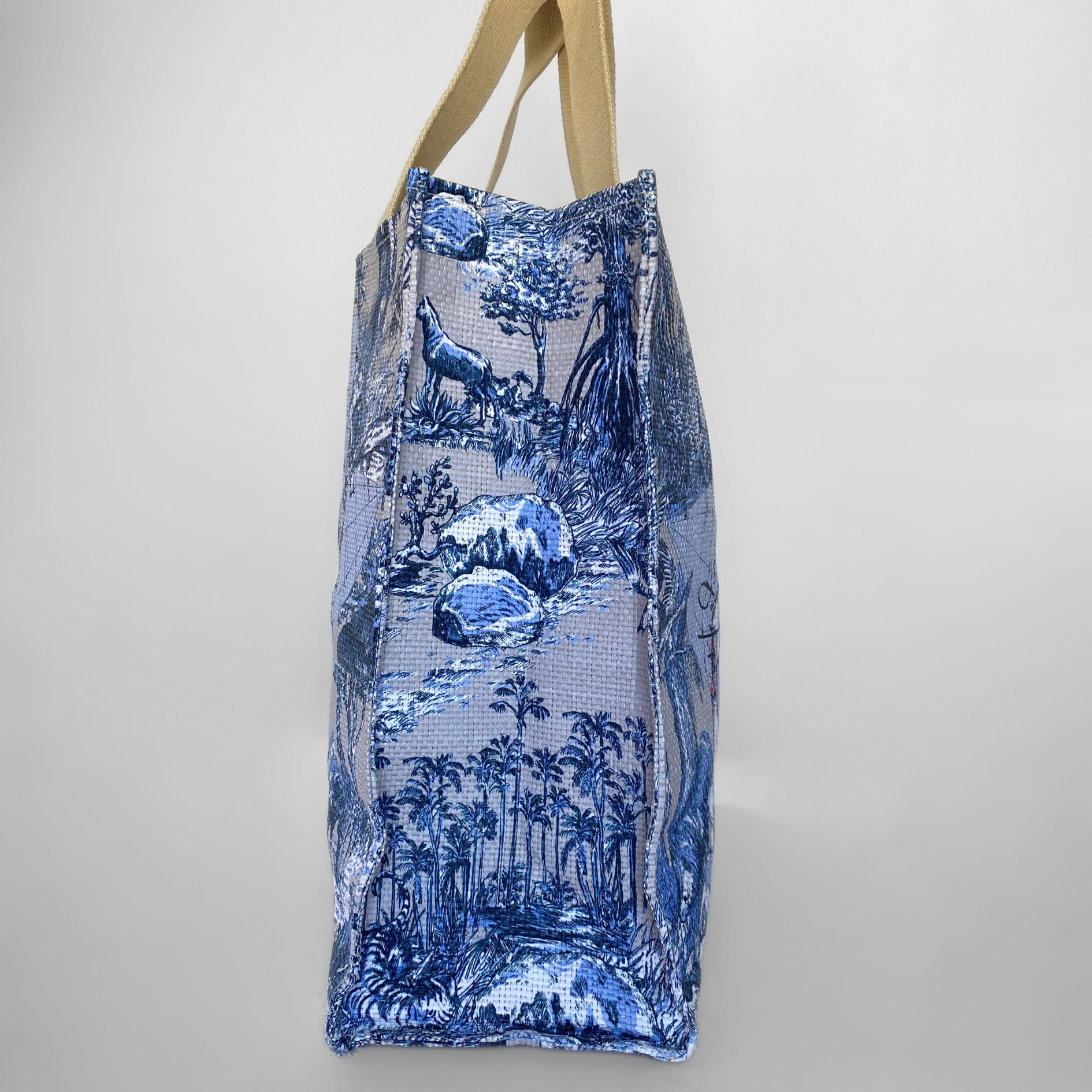 Dior Around The World Tote Bag, in blue and beige cotton. The Tote Bag has fashion and functionality all rolled into one. With its classic shape and roomy capacity, it is the perfect everyday bag.