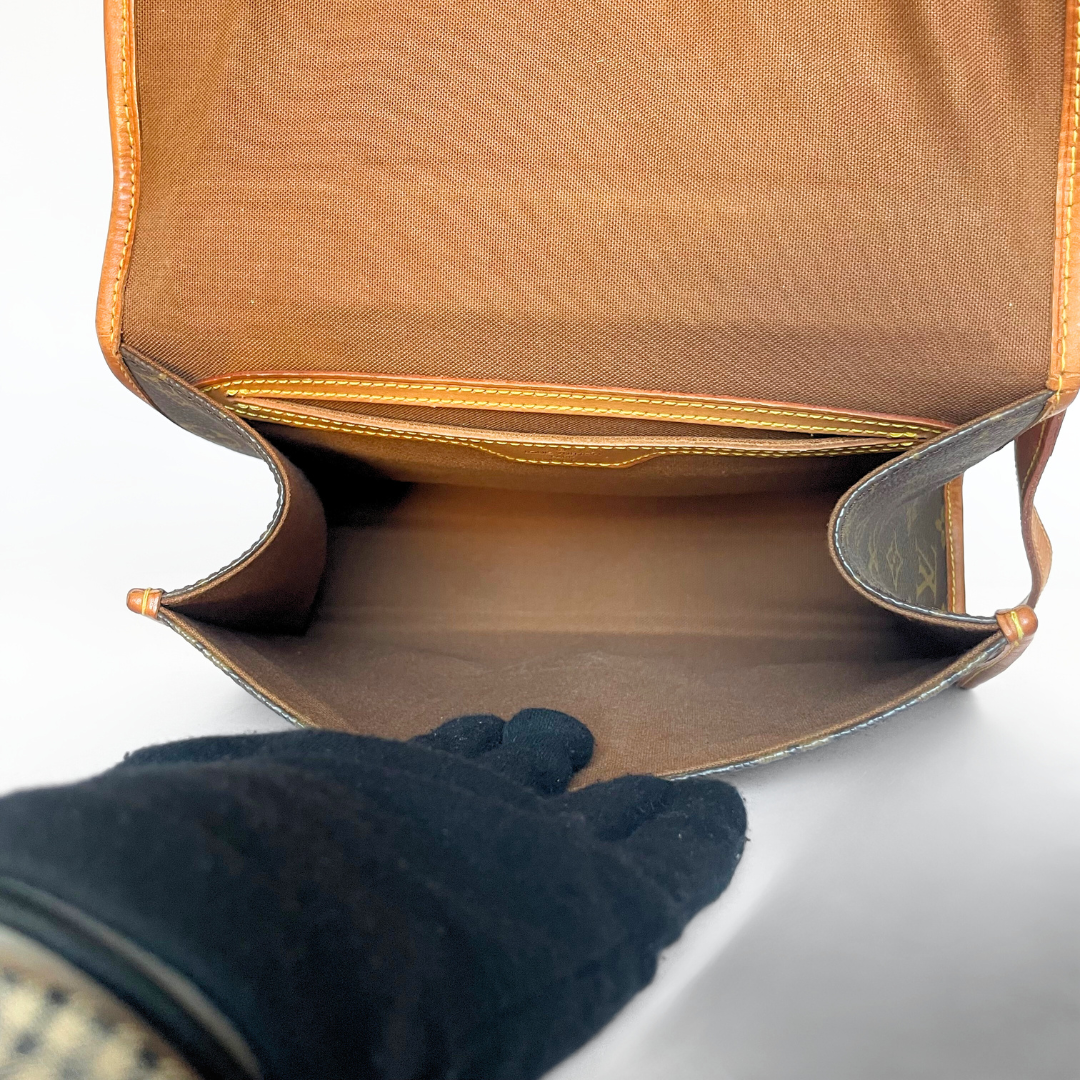 The classic Monogram Canvas has been Louis Vuitton's trademark design since it was first introduced in 1896. The graphic symbols, including the quatrefoils and flowers, as well as the LV Monogram were used to prevent counterfeiting in the early days when it was first patented. Made of coated canvas, the Monogram's traditional look is also endured by its durability. The main compartment closes with a beautiful buckle closure. The inside of the bag consists of one main compartment with one extra pocket.