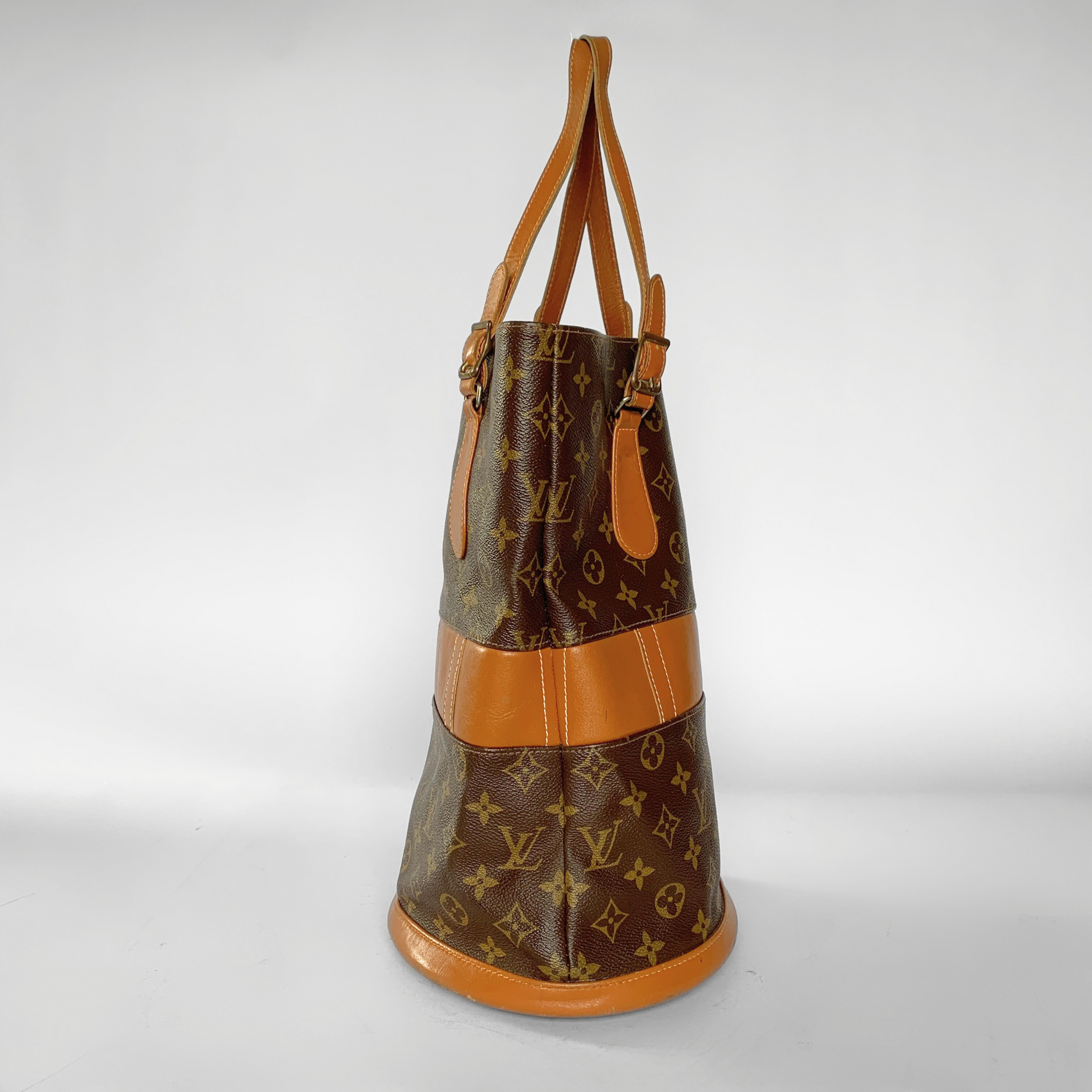 The overall condition of the bag is good. The vachetta leather has become quite dark. Furthermore the canvas is in a good condition, but has a few small stains. this also applies to the inside. The pocket is also clean. This item comes with an authenticity card from our store.