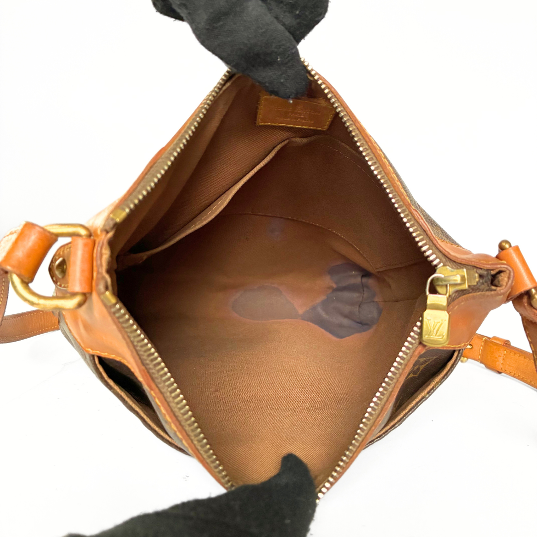 Louis Vuitton Odeon PM in Monogram Canvas and Vachetta leather. The bag closes with a zipper, has a big front pocket and features leather crossbody straps. The bag can be worn crossbody. The bag has gold-colored hardware. The bag has two slip pockets on the inside. Its roomy interior, slouchy shape, combined with its timeless elegance makes the perfect everyday bag.