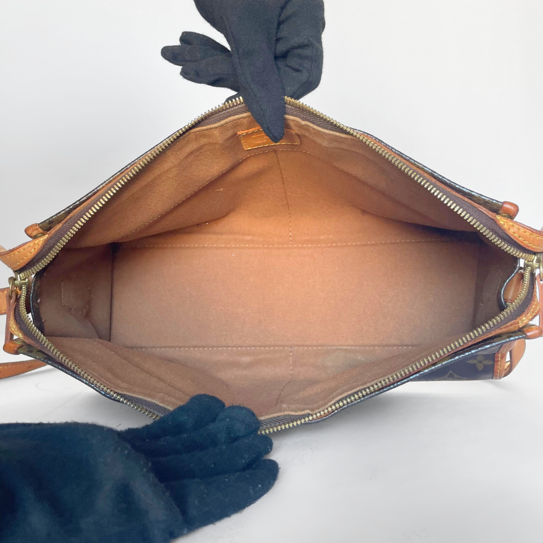 The overall condition of this Louis Vuitton Popincourt bag is good, the outside lining shows no signs of use and the inside lining is very neat as well as you can see in the photos. The Vachetta leather has some discoloration spots but this is very minimal. The gold colored zipper has some slight discoloration. This item comes with an authenticity card from our store.